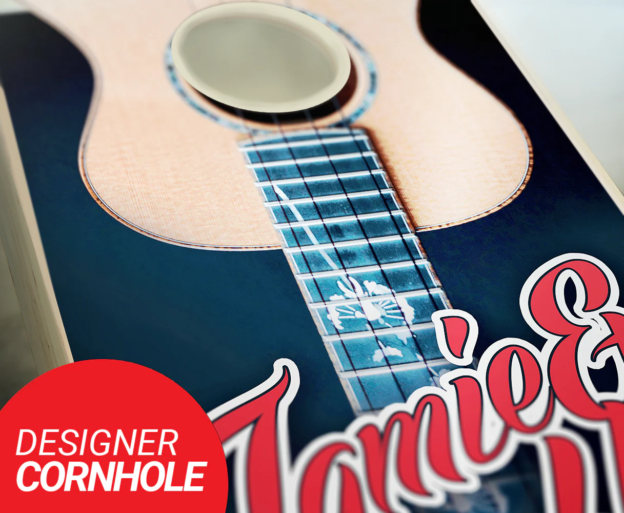 Show off at your next event with this specialty designed cornhole set! The decal is printed vinyl and finished with a clear coat polyurethane to protect your boards for years. This 24"x48" set of cornhole boards comes with folding legs and you can add a full set of 8 standard cornhole bags. The boards are completely sanded for a smooth finish. These boards are made of quality 1/2" plywood and will hold up to anything you throw at them. Great for a BBQ, tailgating, camping, or just a relaxing day in the sun. Our boards are ACA Certified!