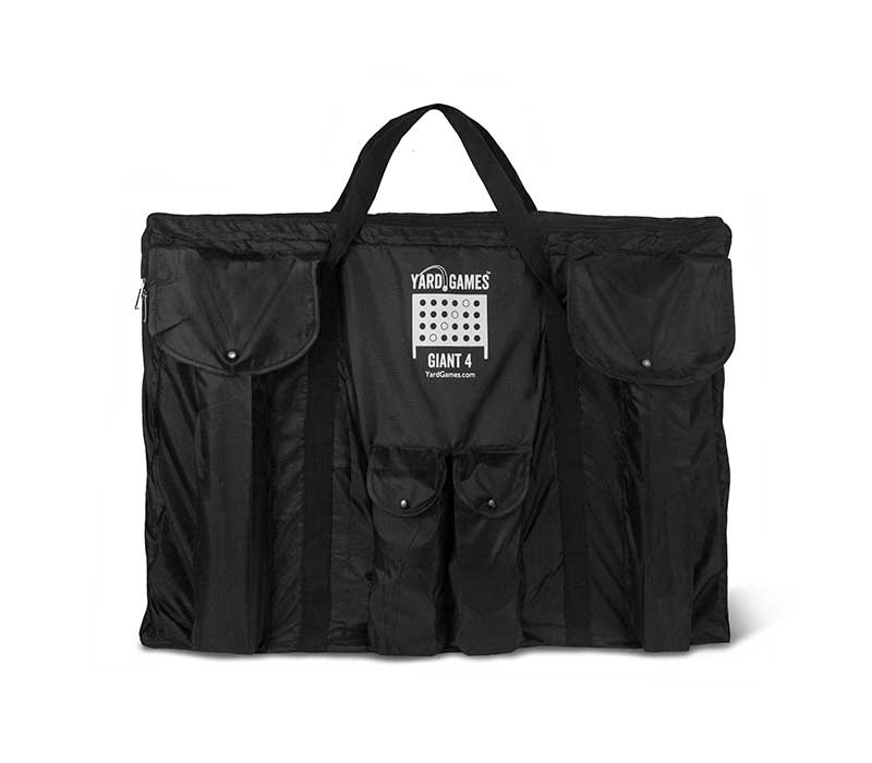 Simply slide out the wooden bottom bar when finished to release the large plastic coins and store them in the game. Our yard connect 4 game is perfect for parties, BBQs, tailgating, group events, family gatherings, and much more! It now comes with a carrying case for easy setup and transport.